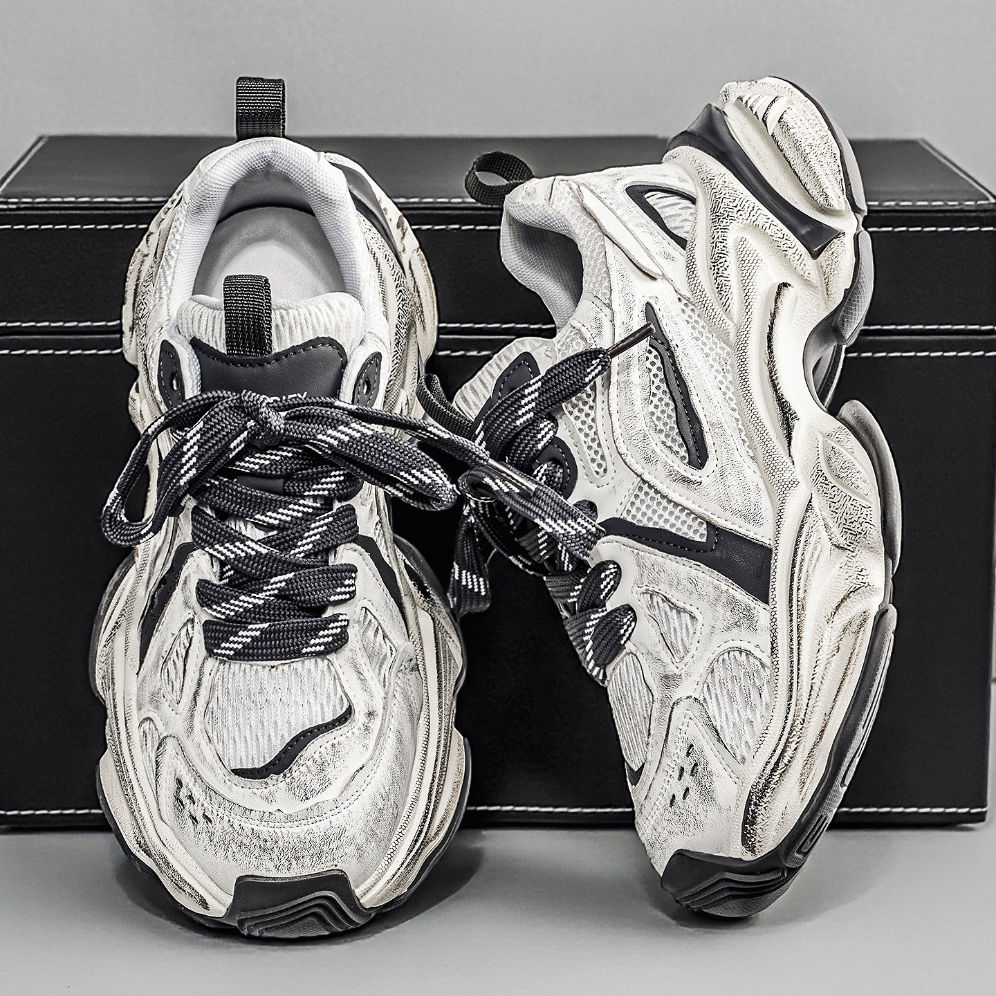 欧洲站男鞋冬季学生运动休闲高级感厚底增高跑步复古擦色老爹潮鞋