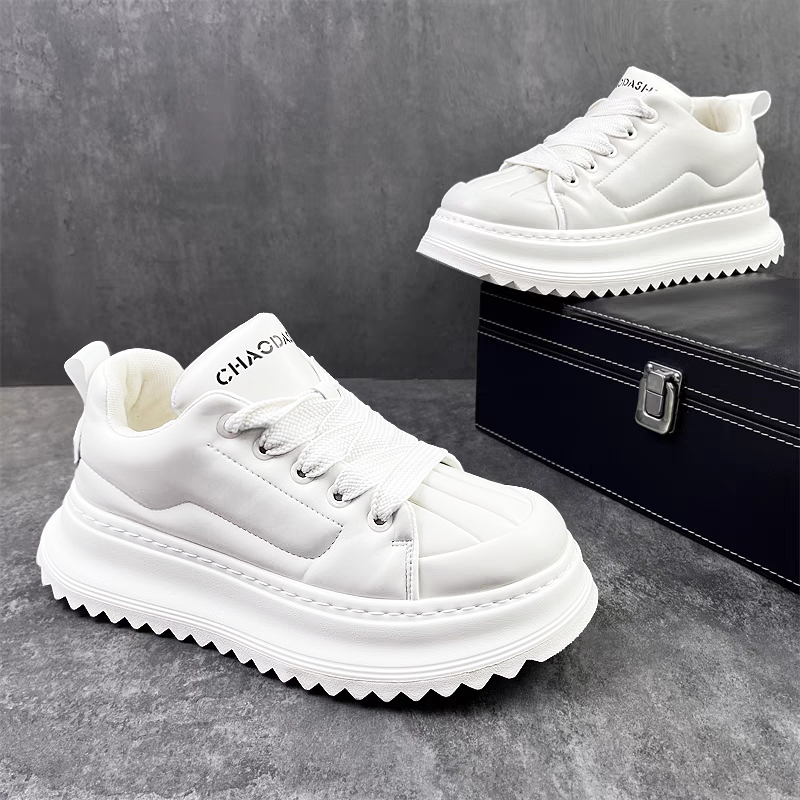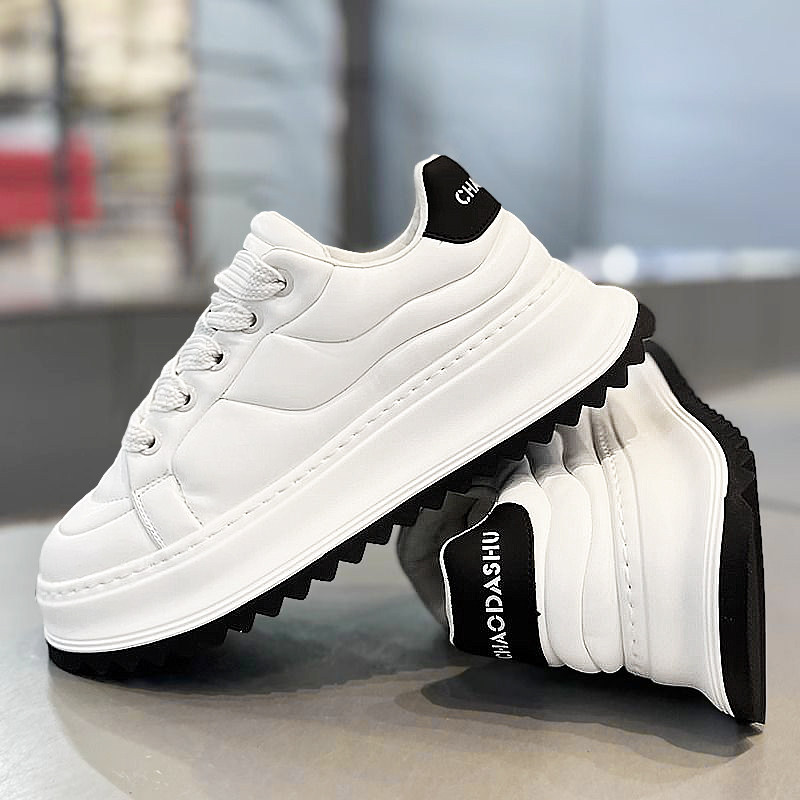 欧洲站男鞋冬季高级感学生运动厚底小白板鞋休闲白色增高老爹潮鞋