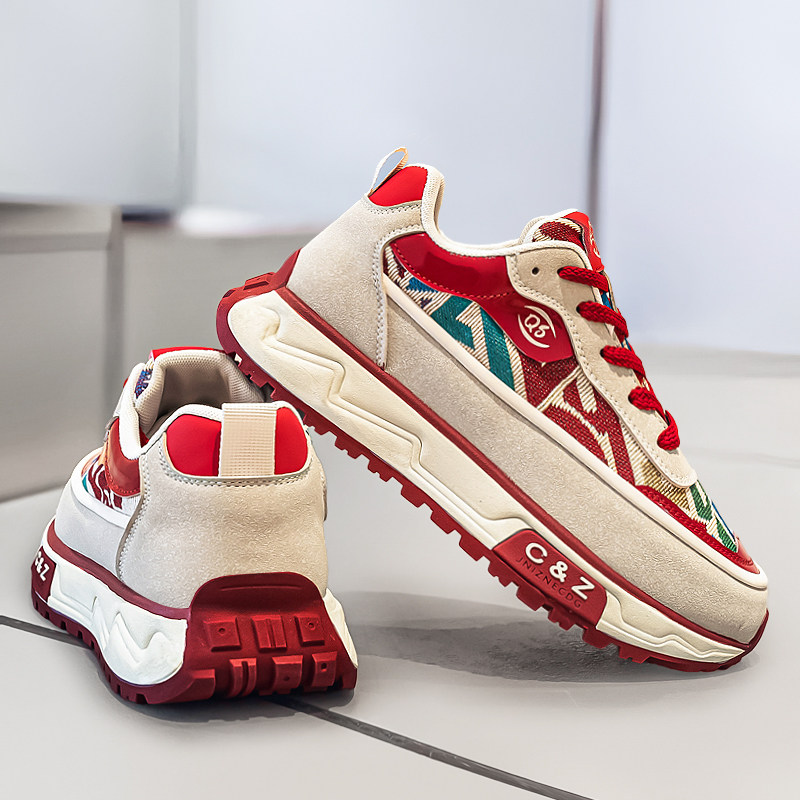 欧洲站男鞋冬季休闲学生青少年运动百搭本命年红色印花阿甘老爹鞋