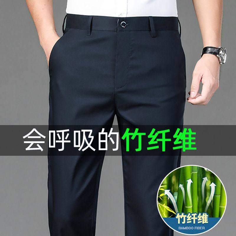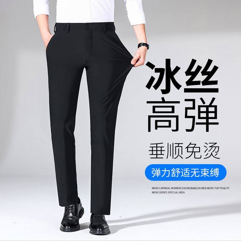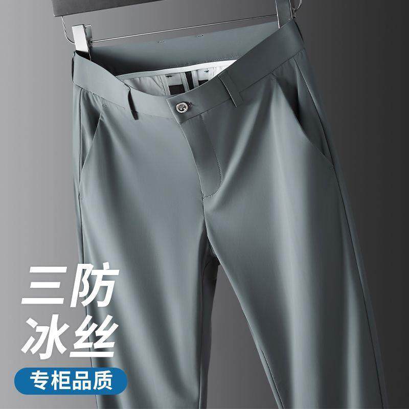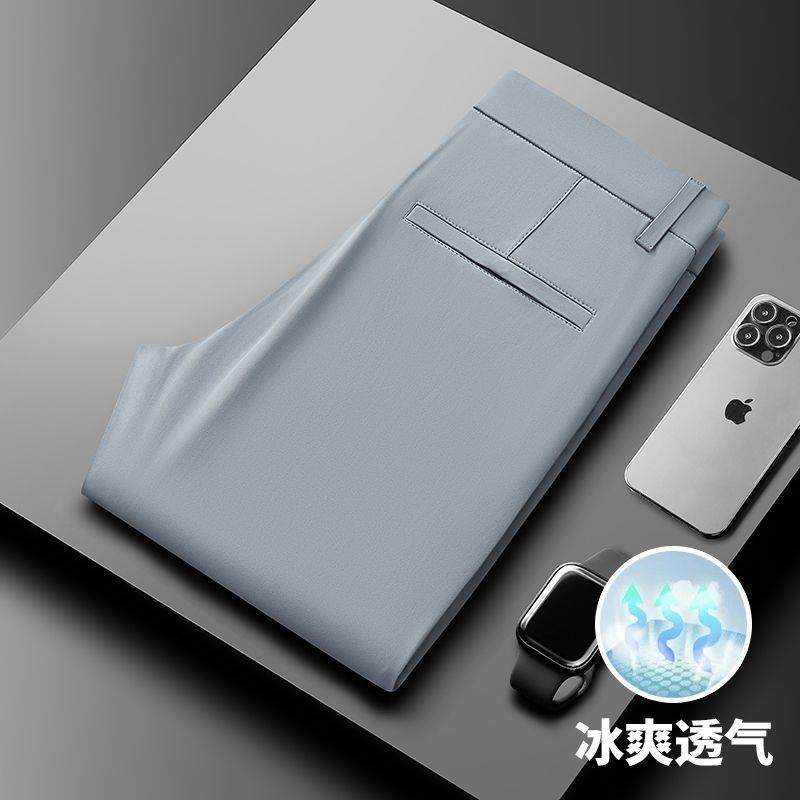 男士休闲裤男裤夏季冰丝超薄款空调西裤弹力丝滑直筒修身长裤子男
