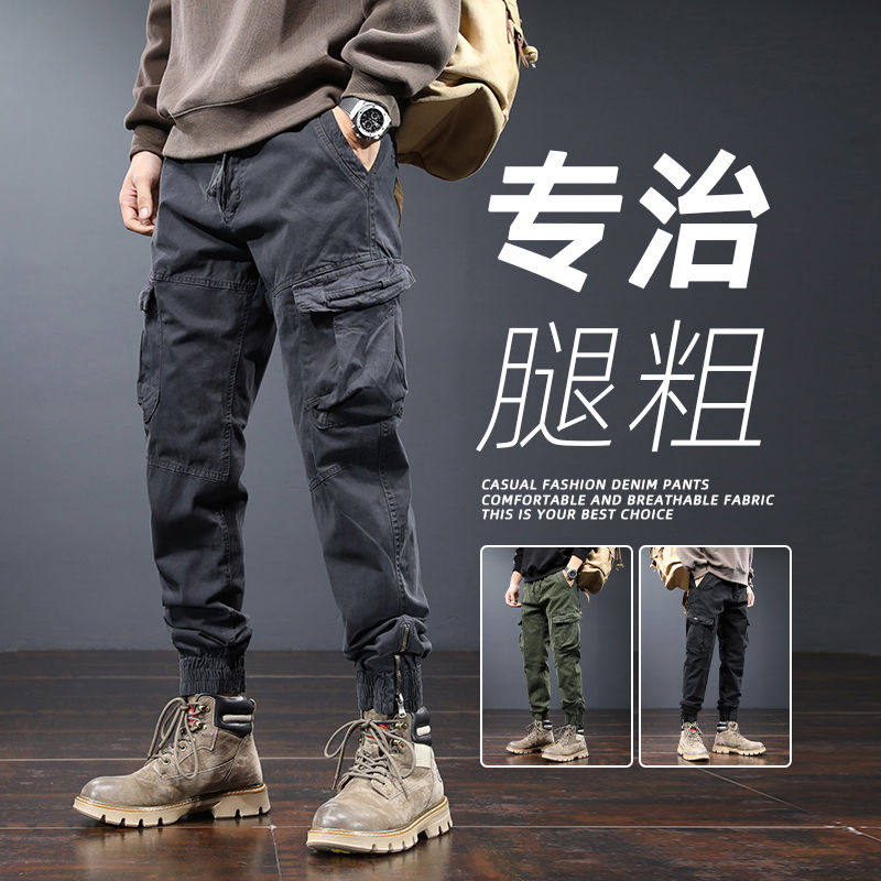工装裤男潮牌春季宽松束脚2023新款长裤男士休闲裤子春秋九分男裤