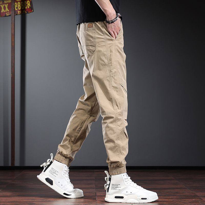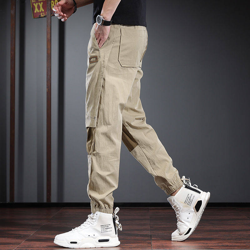 裤子男夏季薄款男士休闲裤男裤夏天运动裤男款束脚卡其色2024新款