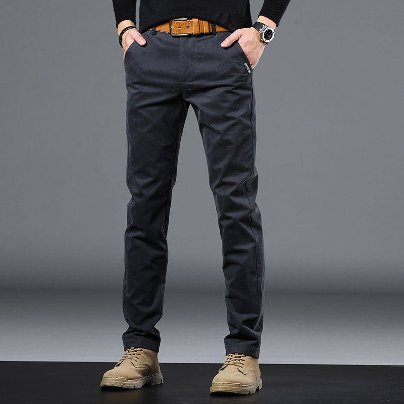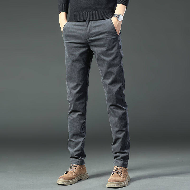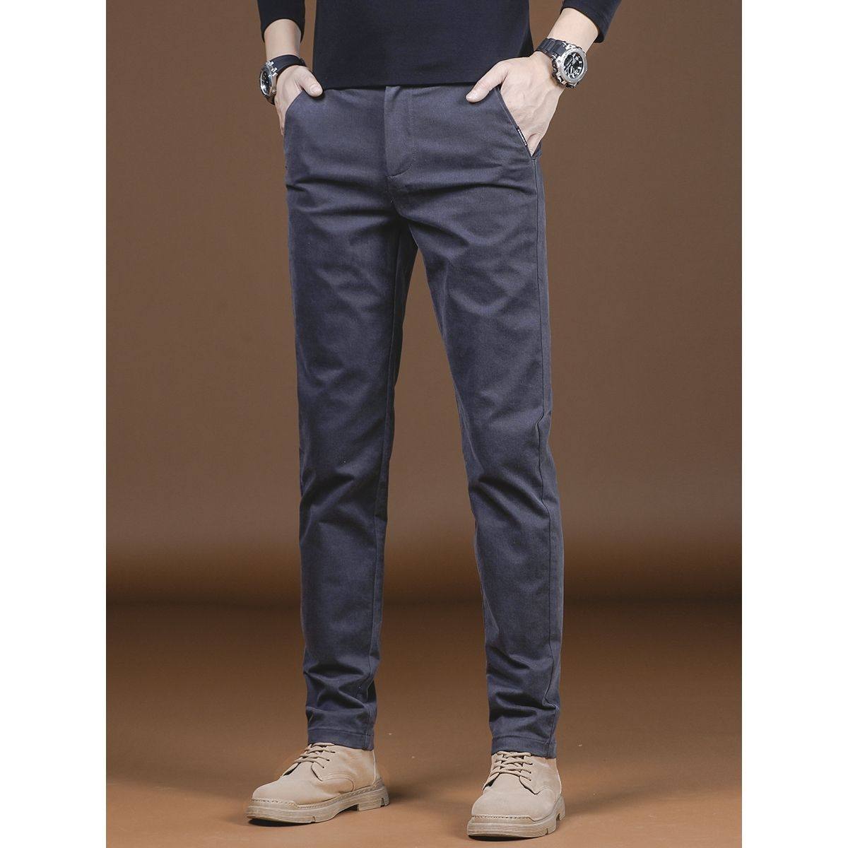 男装裤子中腰休闲裤男秋季新款修身直筒裤保暖加绒加厚男裤春夏款