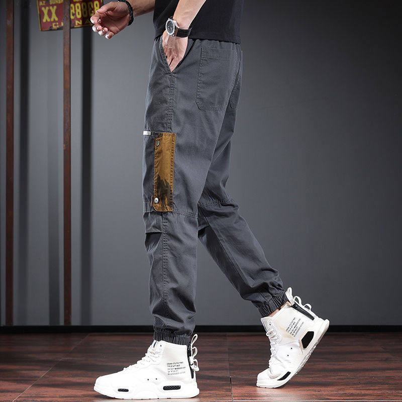 裤子男秋季薄款男士休闲裤男裤工装裤男款束脚裤灰色2024新款春秋