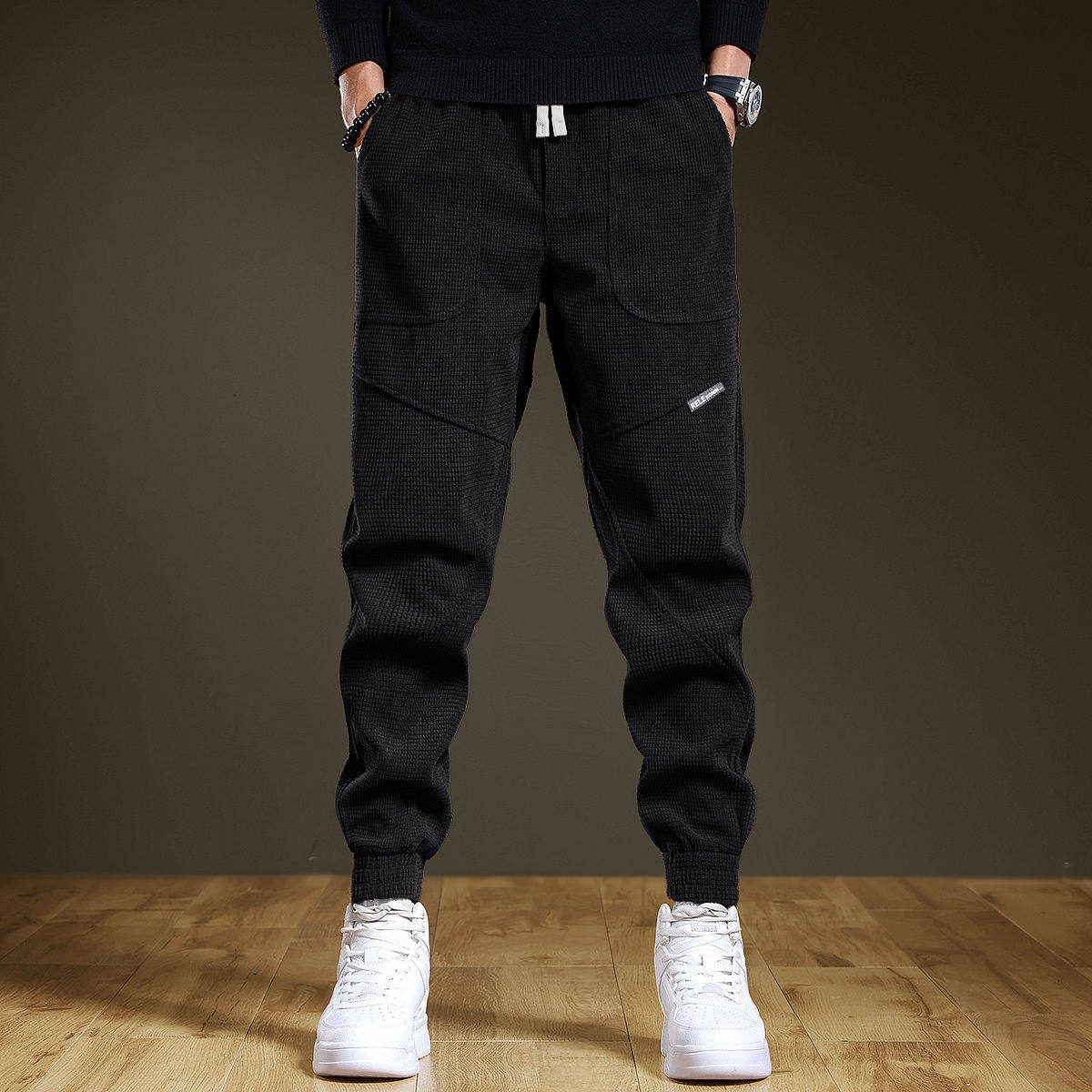 灯芯绒休闲裤男春秋季宽松潮流加绒加厚男裤黑色大码松紧腰束脚裤