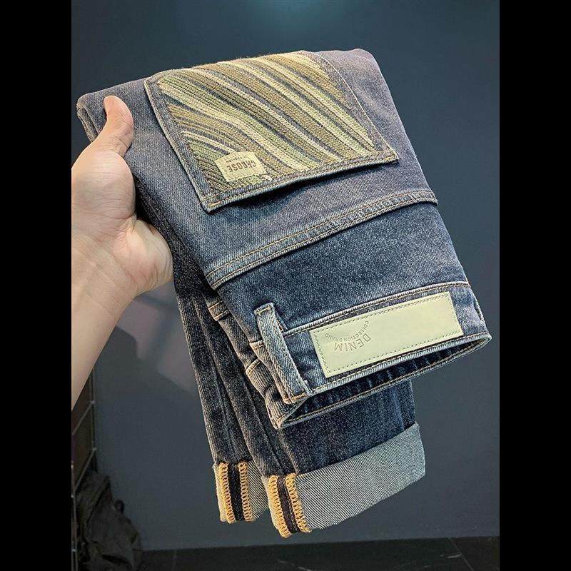 牛仔裤男秋季新款潮牌轻奢修身小脚长裤刺绣休闲百搭弹力水洗男裤