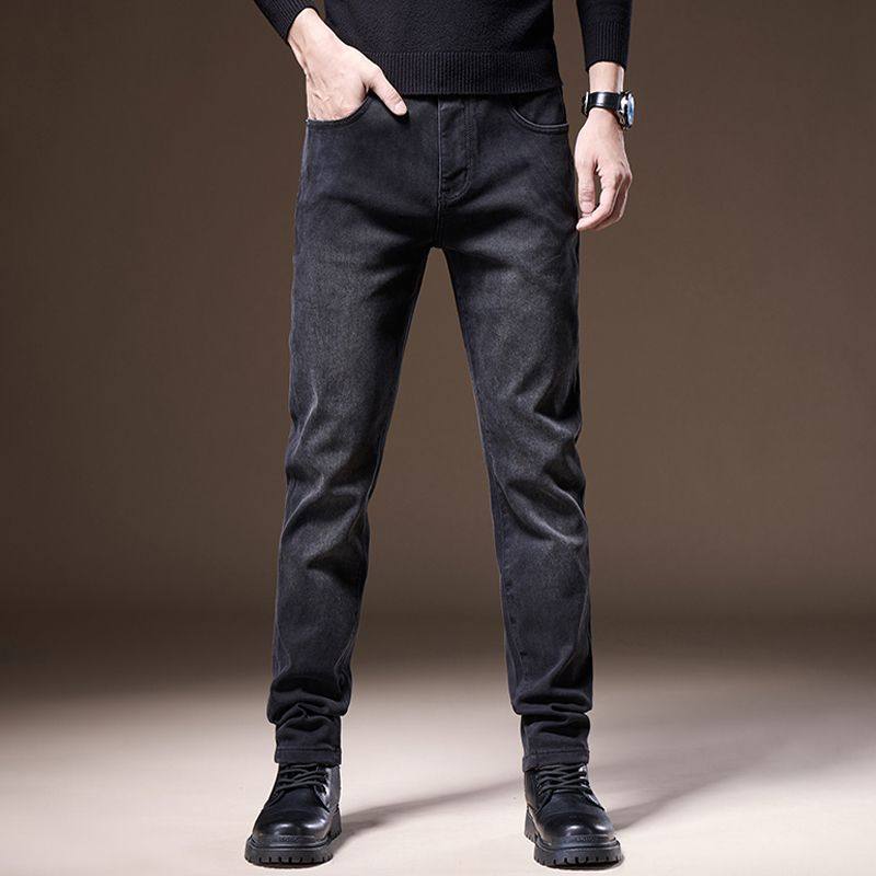 男装裤子中腰休闲裤男秋季新款修身直筒裤保暖加绒加厚男裤秋冬款
