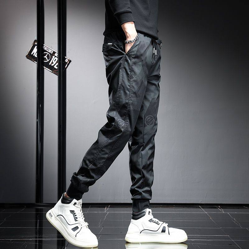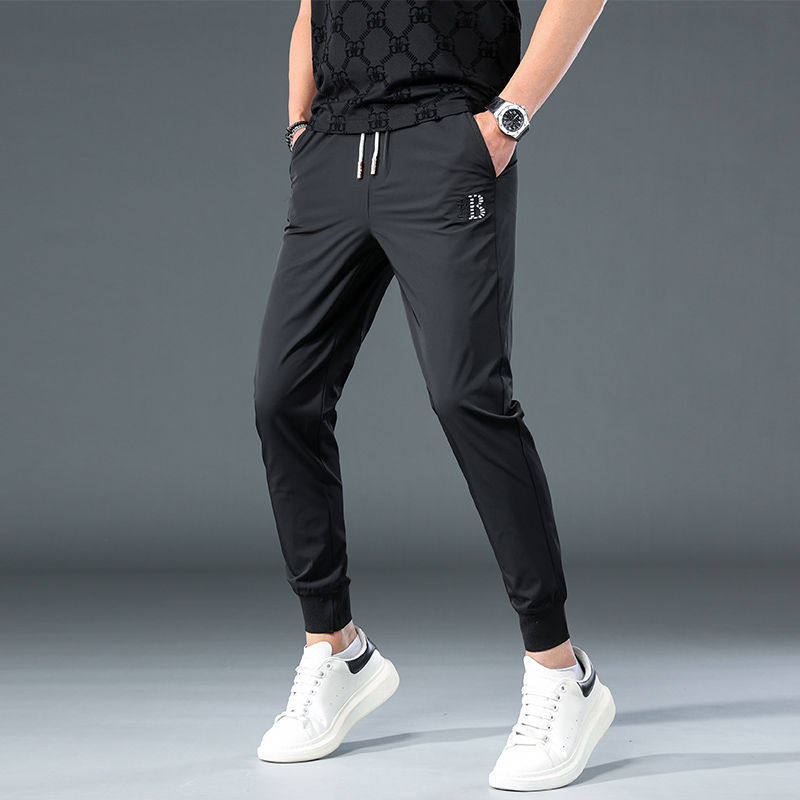 裤子男夏季薄款男士休闲长裤潮牌速干男款百搭运动九分裤冰丝男裤