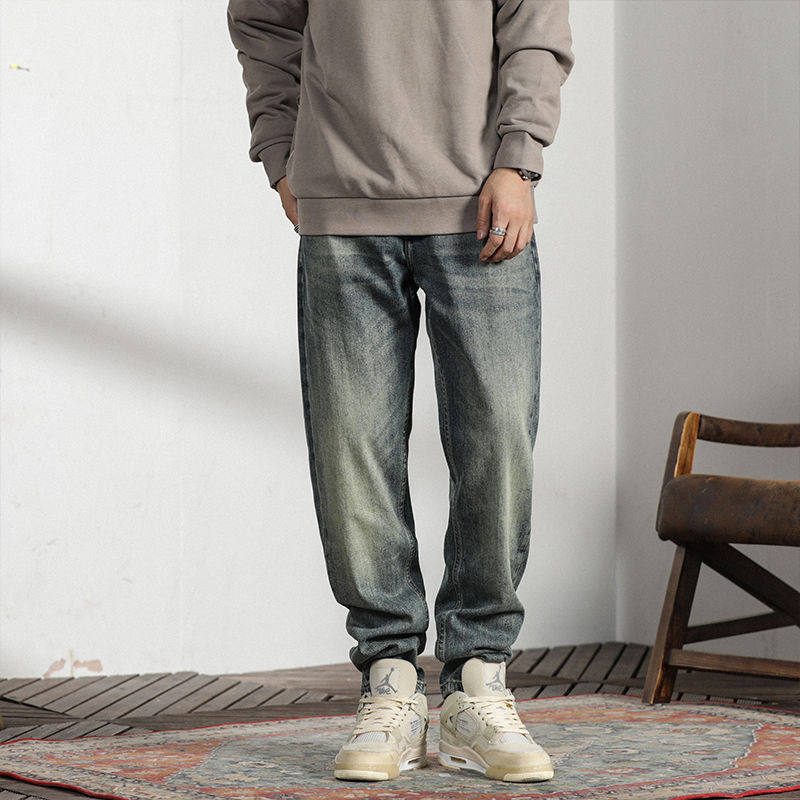 牛仔裤男士2022年秋冬新款复古怀旧洗水哈伦锥形长裤轻奢高街男裤