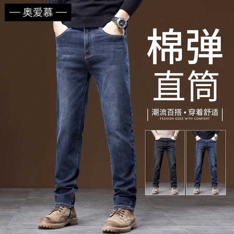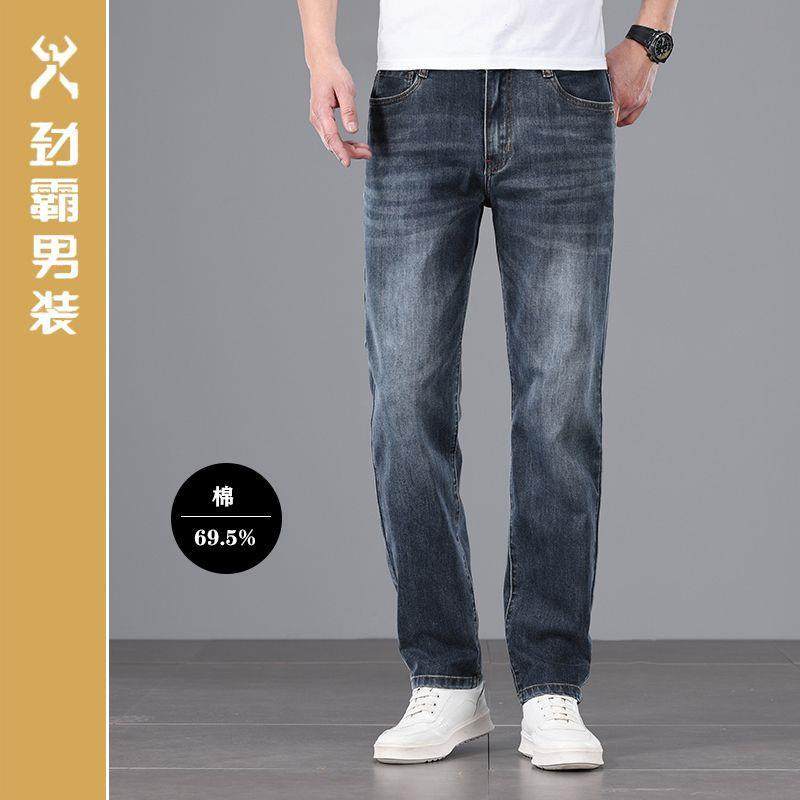 2025男装牛仔裤春夏季中年小直筒中腰弹力时尚潮流百搭休闲男裤
