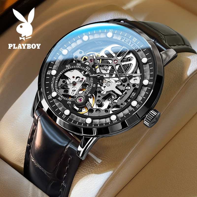 花花公子手表男士机械表全自动新款正品潮流镂空运动防水品牌男表
