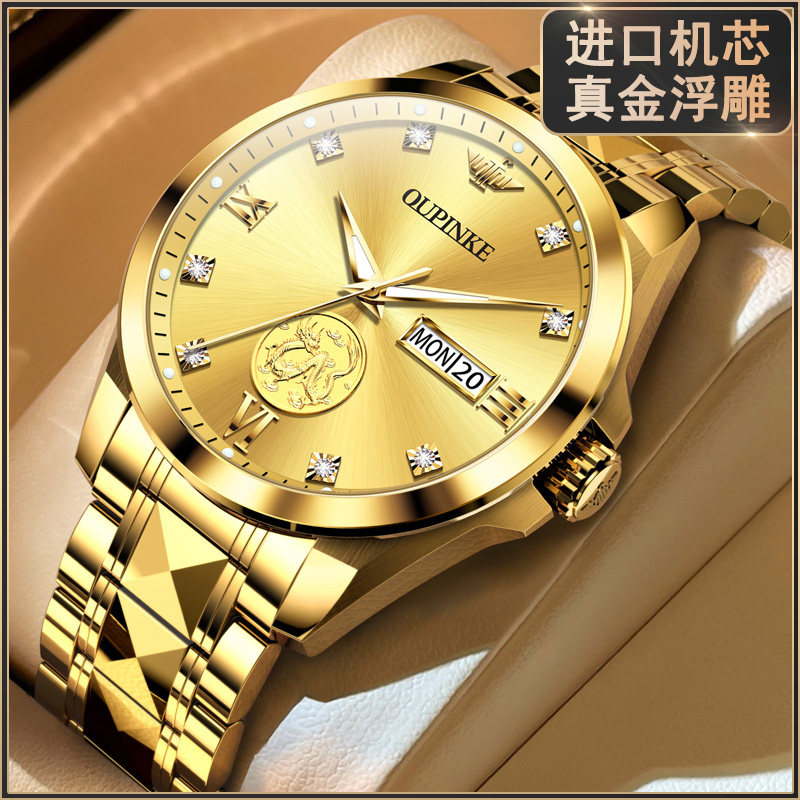 24k全金色真金浮雕瑞士认证品牌男表进口机芯机械表高档手表十大