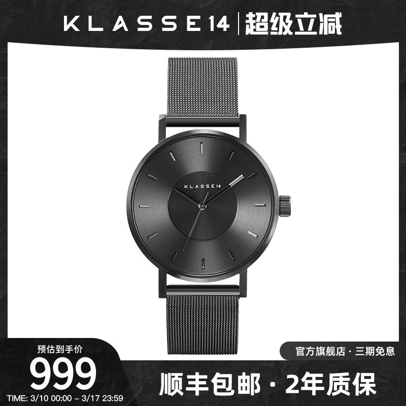 意大利Klasse14品牌男表石英机芯黑武士编织带手表男生生日礼物