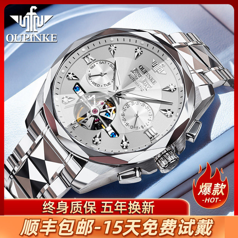 瑞士欧品客男士手表男款多功能机械表钨钢防水夜光腕表正品牌男表