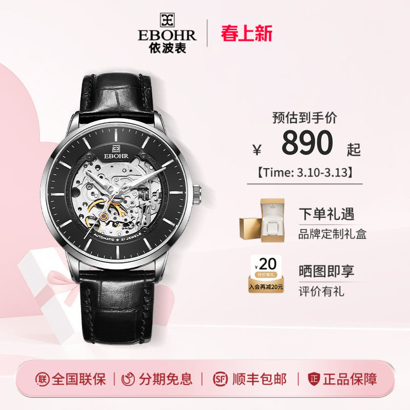 EBOHR依波表礼物手表男大师系列官方镂空自动机械表品牌男表5646