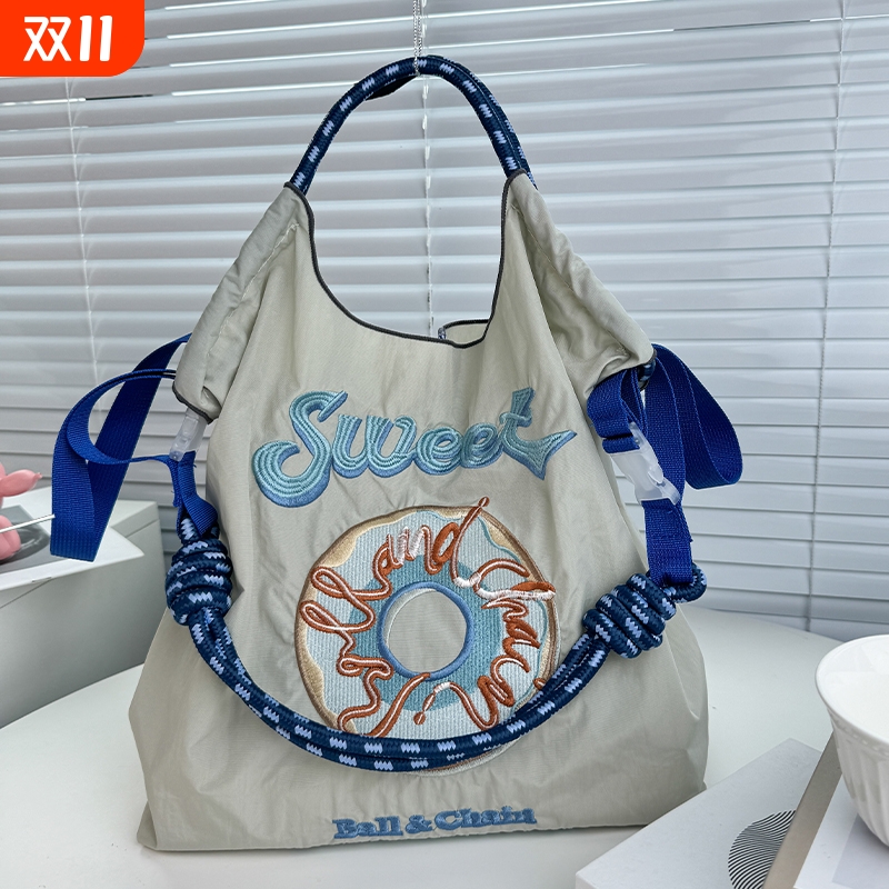 日本ballchain包包高圆圆同款购物袋甜甜圈刺绣尼龙单肩斜挎女包