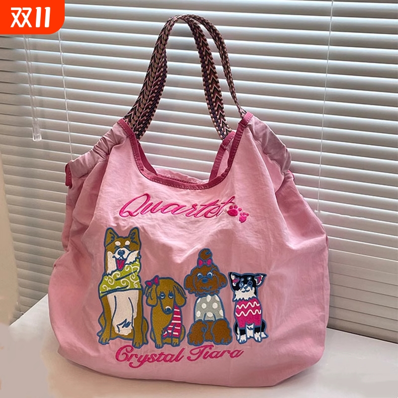 高圆圆同款ball chain日系刺绣尼龙布购物袋大容量学生通勤托特包