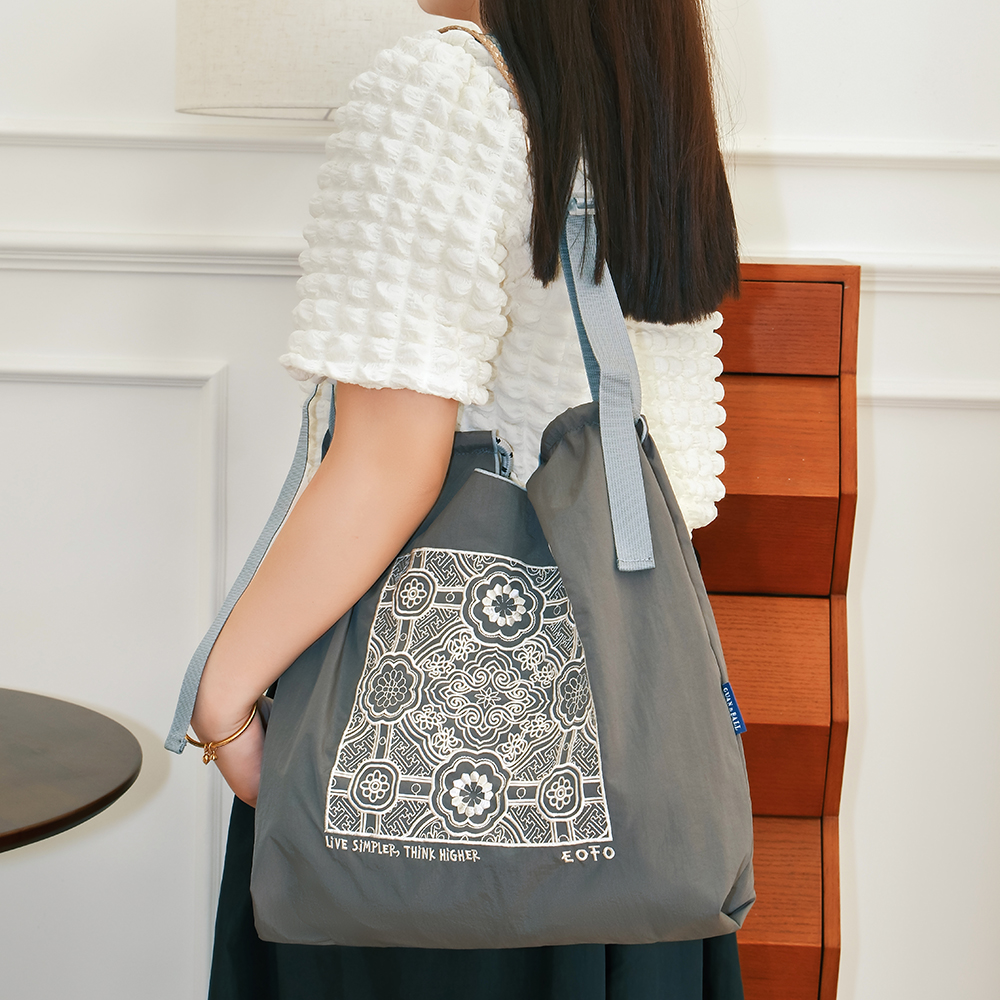 4月新款防水百搭熊猫高圆圆同款日系小众布袋刺绣尼龙购物袋布袋