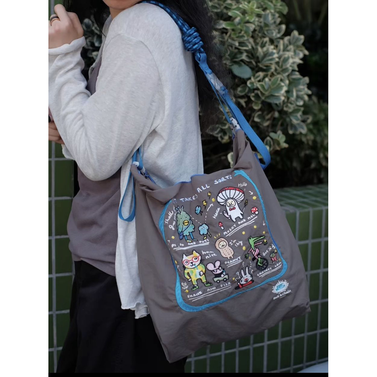 高圆圆同款ball chain刺绣新款丑娃娃环保布袋尼龙大容量单肩包