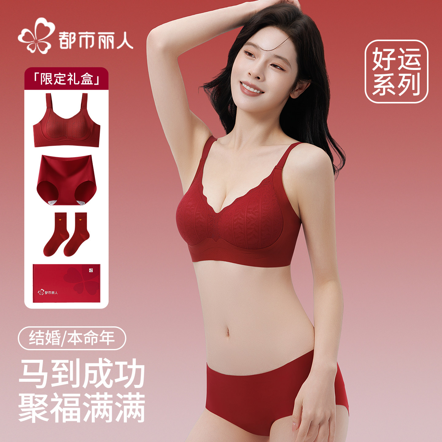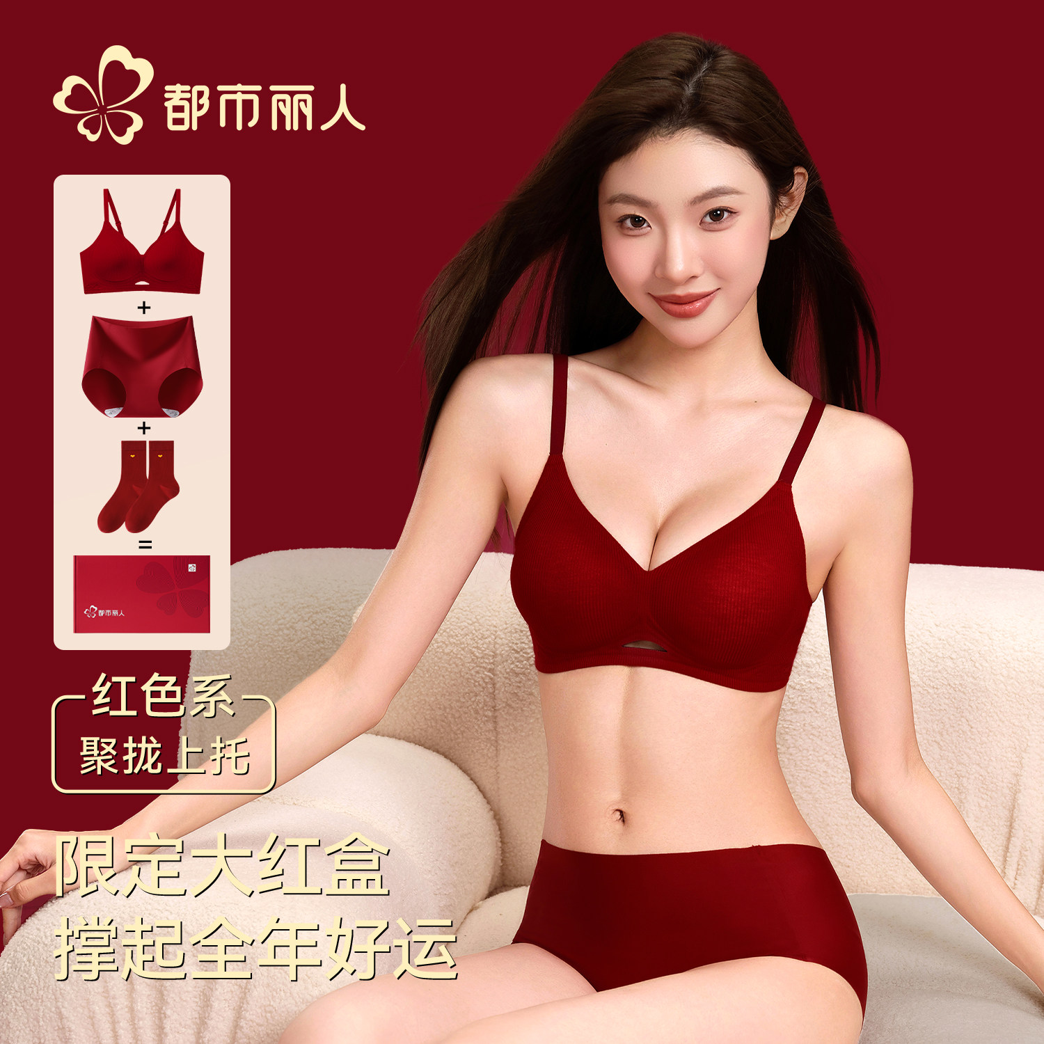 都市丽人2026马年结婚本命年红色内衣女套装礼盒聚拢小胸蕾丝文胸