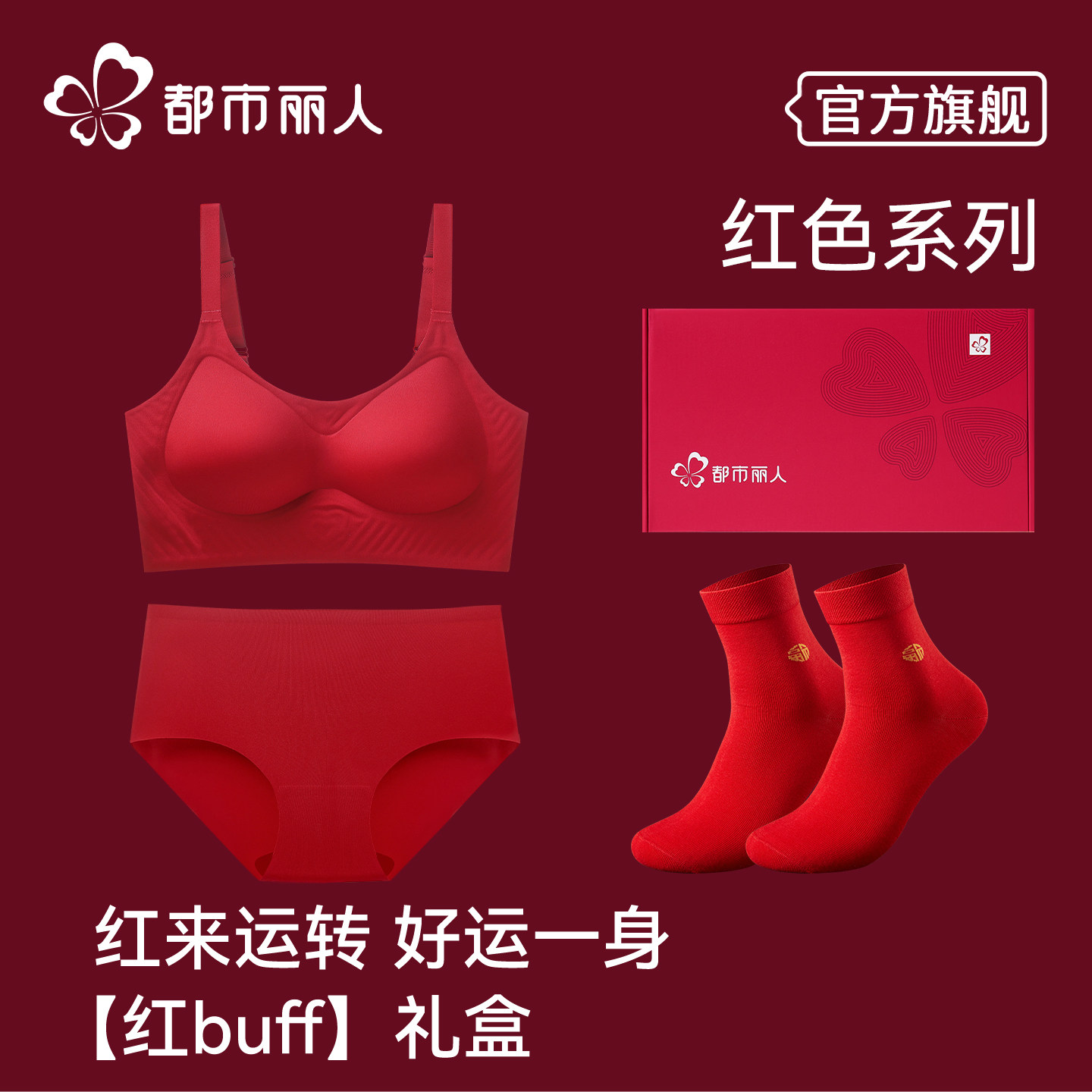 都市丽人本命年红色内衣女小胸聚拢新娘结婚内裤袜子文胸礼盒套装