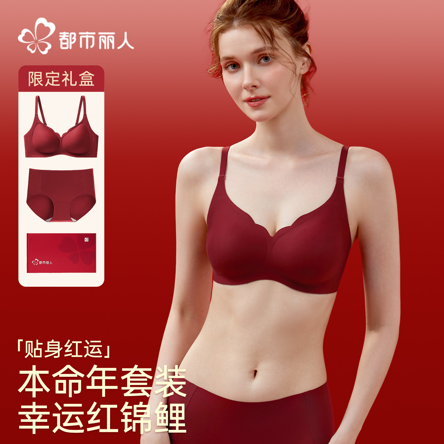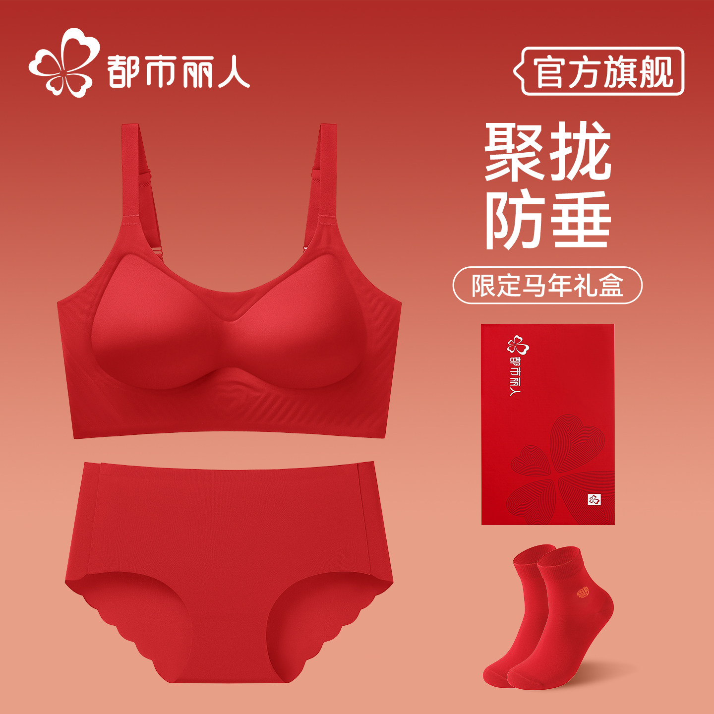 都市丽人本命年红色内衣套装女小胸聚拢2026马年结婚新娘文胸礼盒