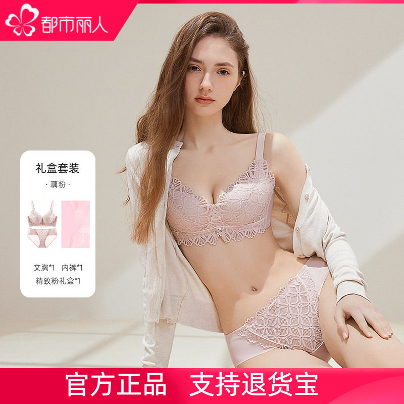 都市丽人蕾丝内衣女士新款小胸聚拢显大上托防下垂前扣文胸罩套装