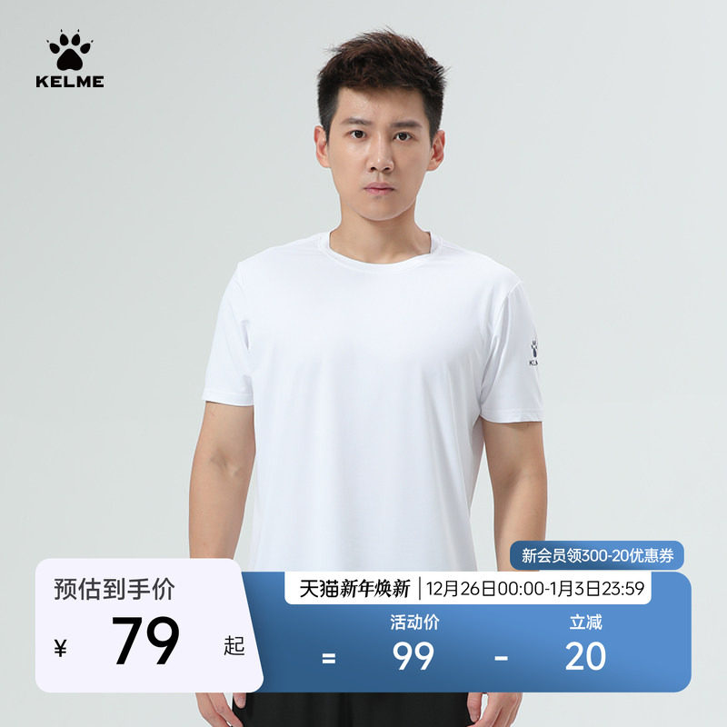 KELME卡尔美运动T恤男透气速干跑步健身训练服女短袖圆领纯色上衣
