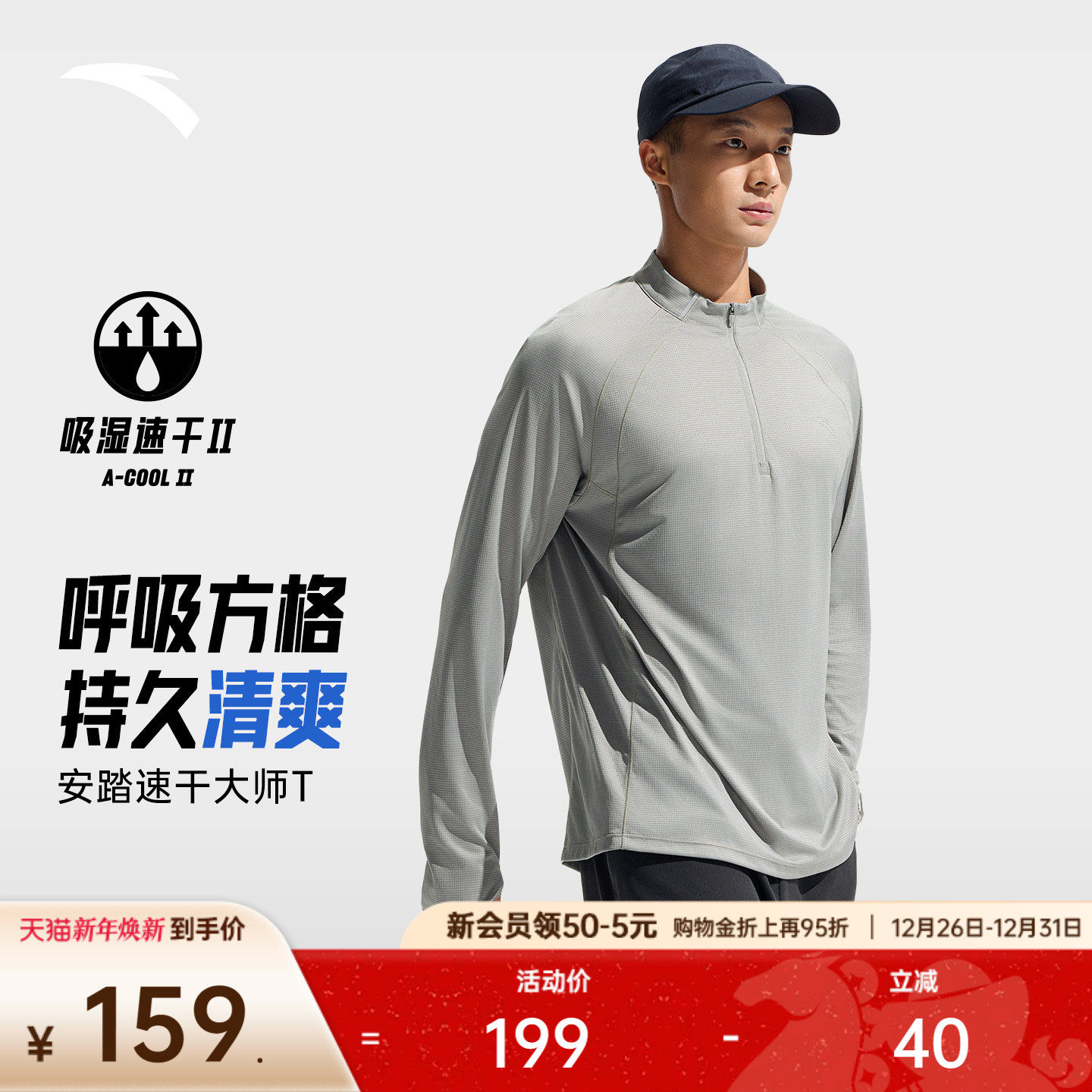 安踏速干大师丨跑步长袖t恤男士新款健身训练羽毛球速干运动上衣
