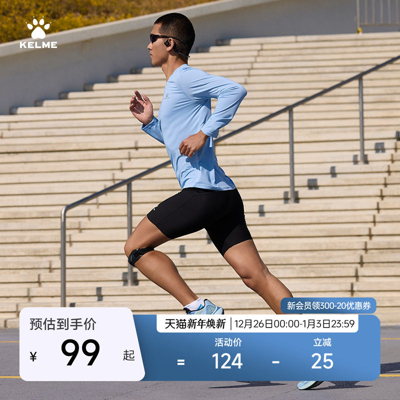 KELME卡尔美速干T恤男秋季新款长袖透气圆领跑步服马拉松运动上衣