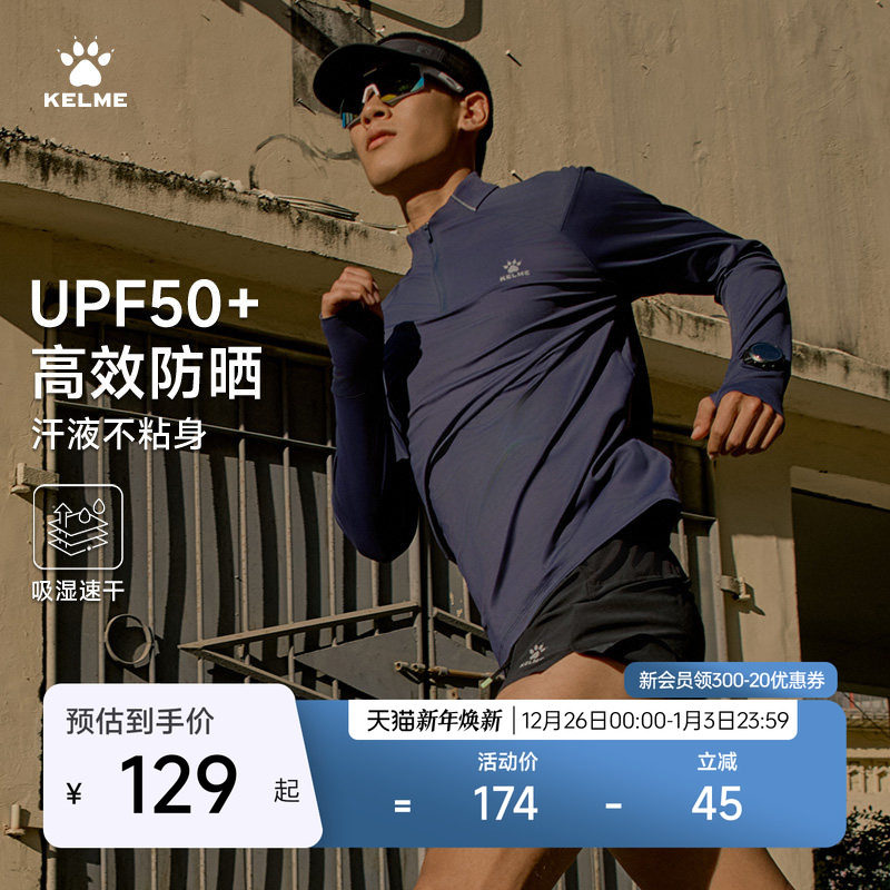 KELME卡尔美长袖跑步防晒T恤男秋季半拉链健身训练服运动速干衣