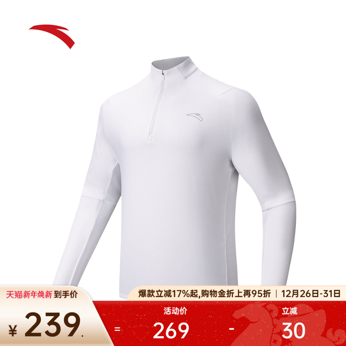 安踏轻暖T丨跑步加绒长袖t恤男冬季新款半拉链立领上衣152615403