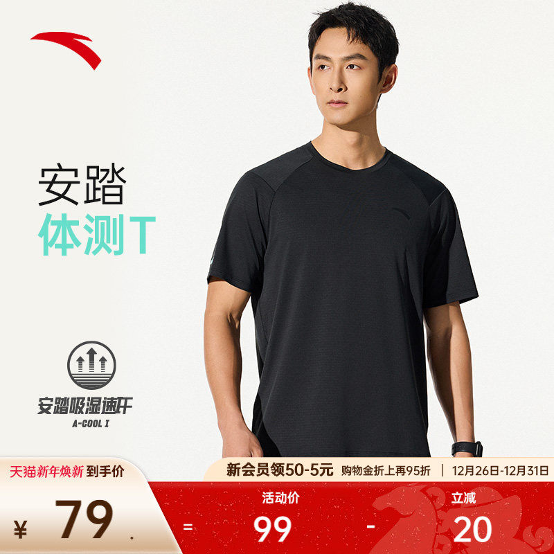 安踏速干T丨动感方格短袖t恤男士2025夏季健身跑步训练服速干上衣