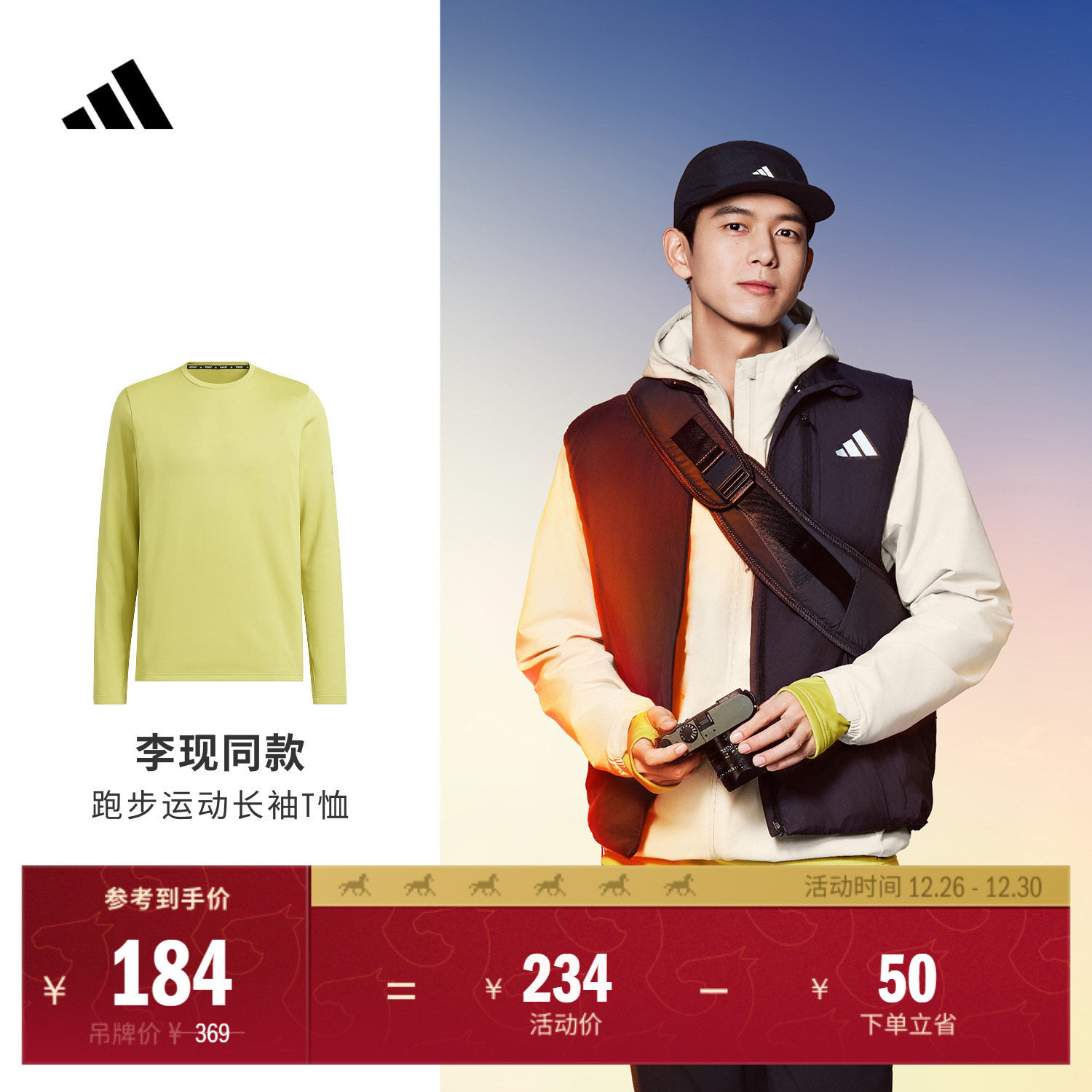 李现同款透湿保暖加绒跑步运动圆领长袖T恤男女秋adidas阿迪达斯