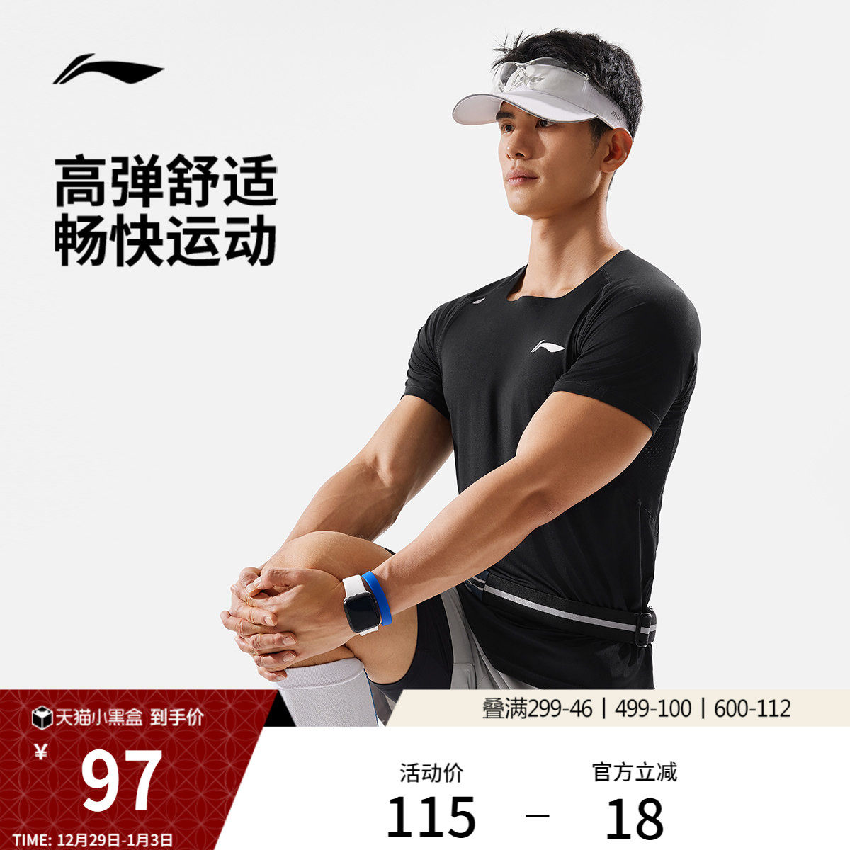 李宁跑步T恤男士夏季官方新款透气上衣男圆领短袖健身针织运动服