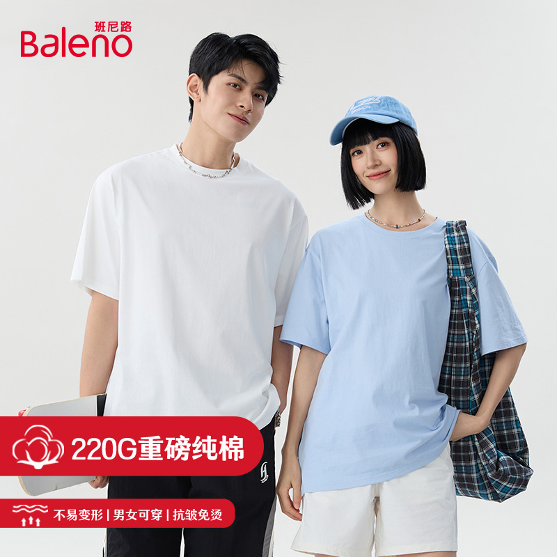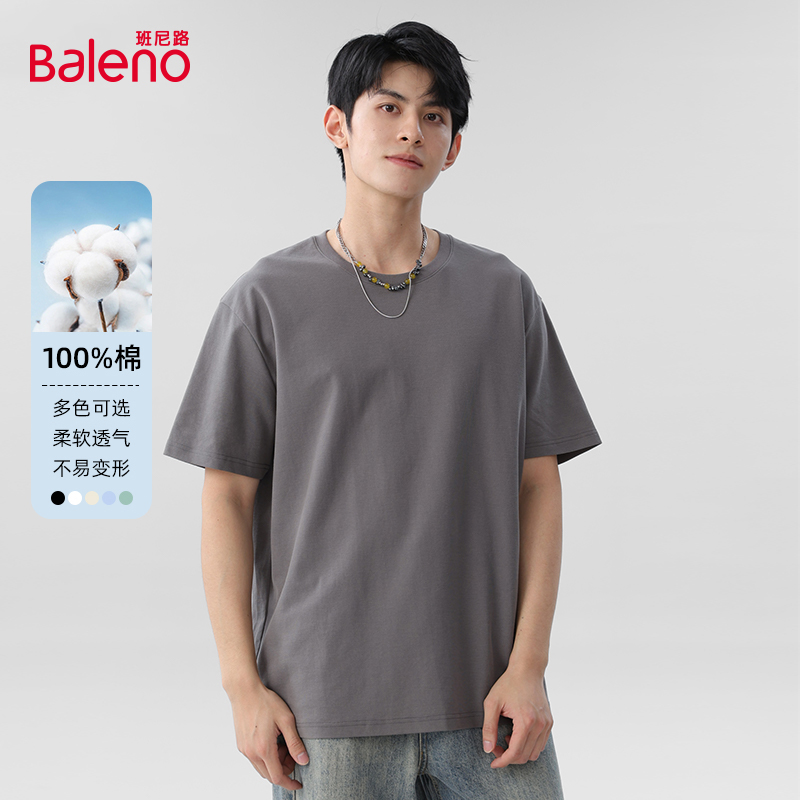 班尼路男生t恤短袖夏季简约风纯色半截袖青少年重磅纯棉宽松体恤