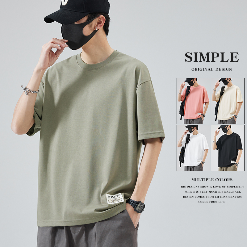 夏季简约纯棉短袖t恤男宽松潮牌大码半袖男生潮流百搭纯色体恤潮