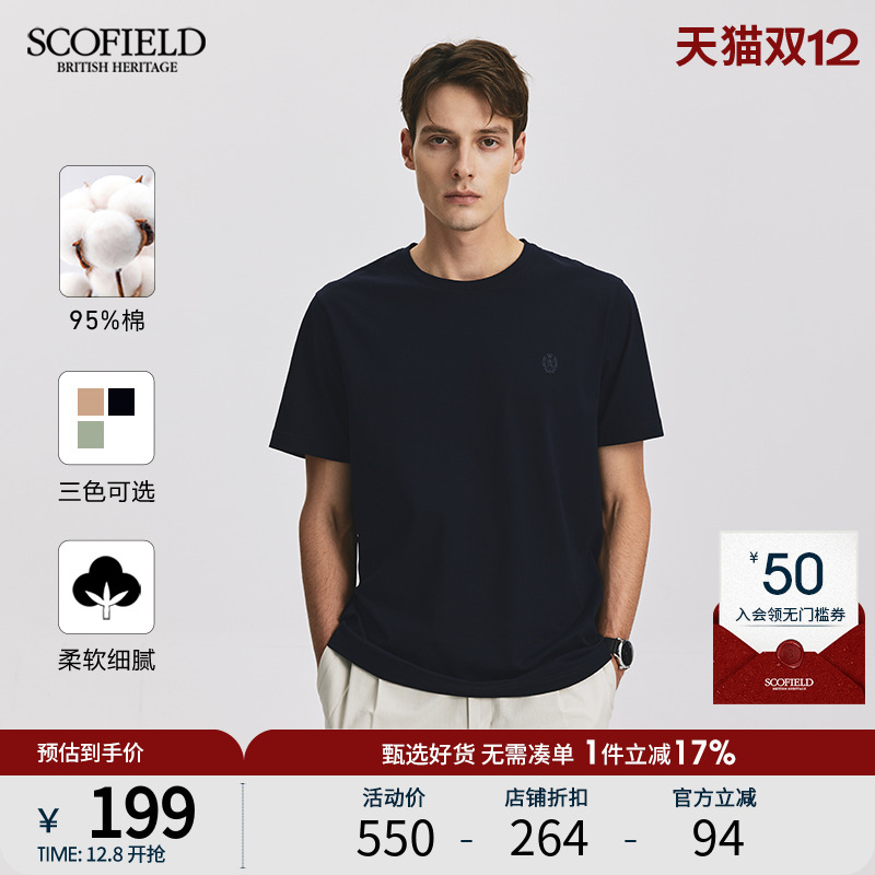 SCOFIELD男士夏季新款圆领套头短袖T恤男生休闲舒适棉质纯色