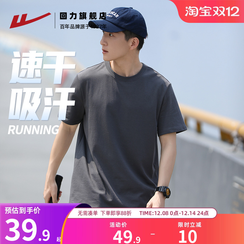 回力速干T恤短袖男款夏季新款正肩冰丝运动半袖纯色休闲男生上衣