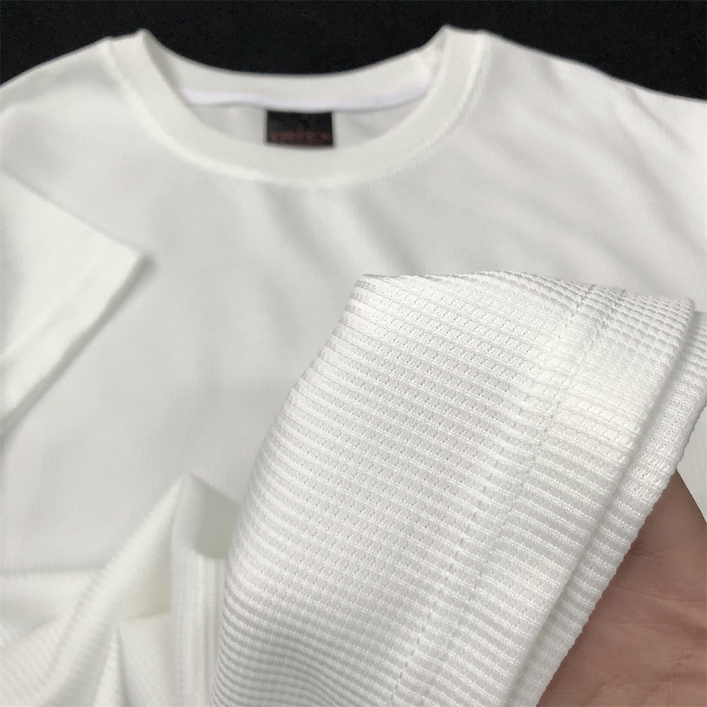 白色华夫格男t恤夏季纯色衣服男生纯白打底衫圆领短袖男士白上衣