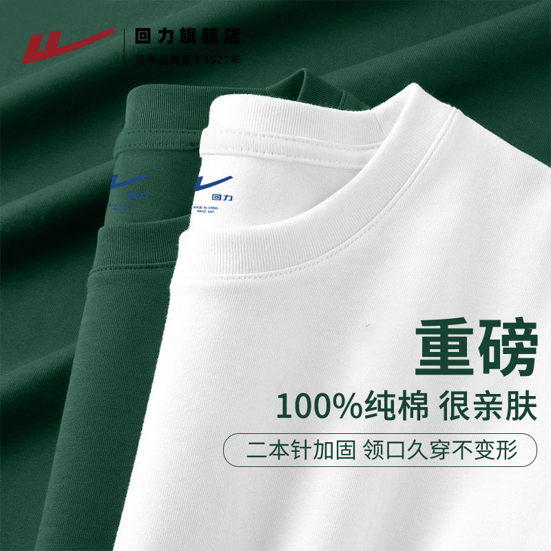 回力短袖男款夏季重磅纯棉纯色t恤男生夏装新款半袖男士上衣服潮H