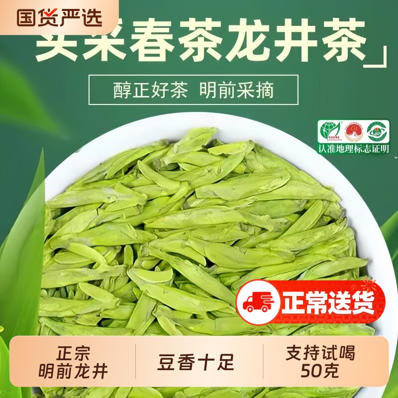 西湖工夫杭州特级明前龙井茶绿茶罐装茶叶自己喝年货送长辈春茶50