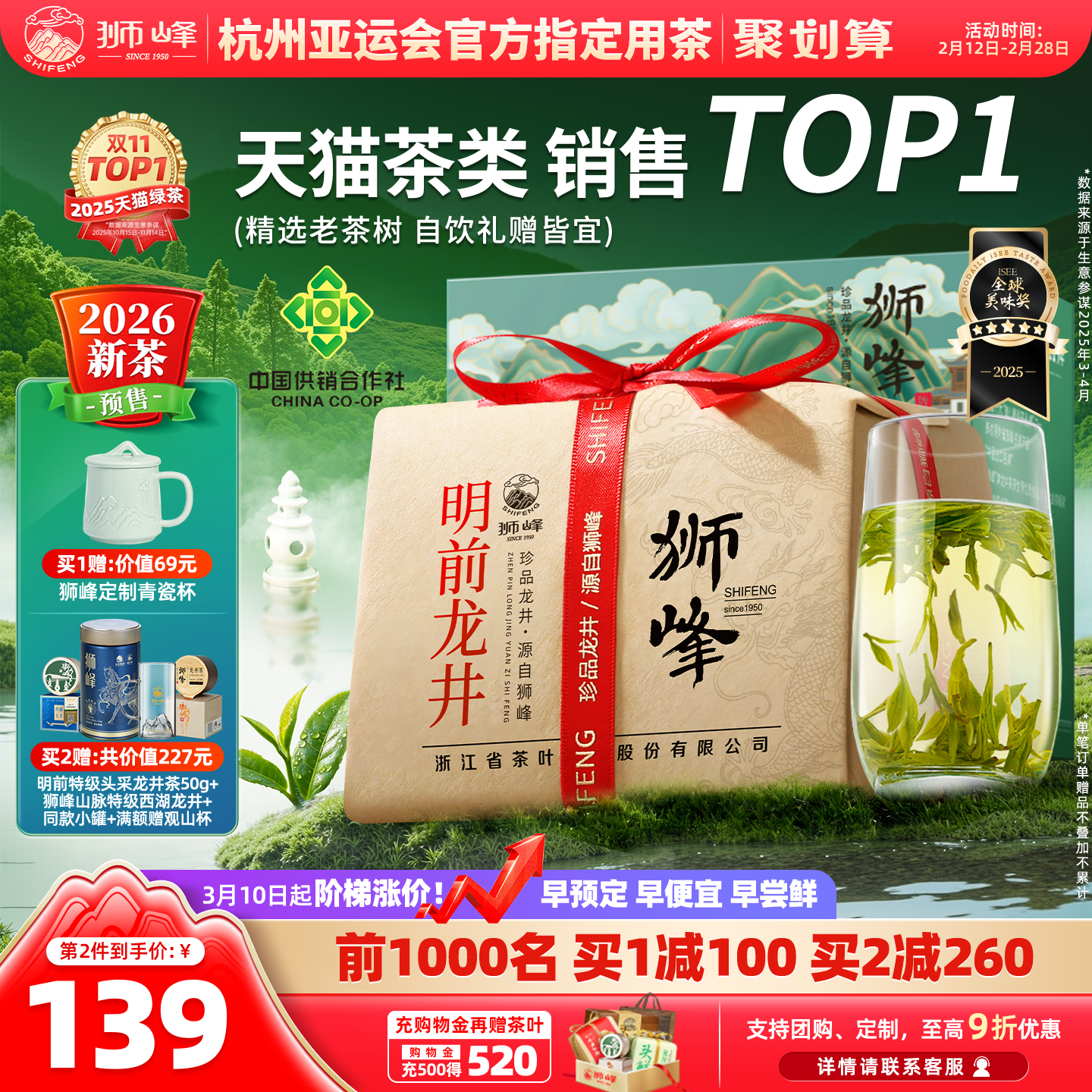 狮峰牌西湖龙井2026新茶预售老茶树明前龙井茶叶绿茶自己喝特级