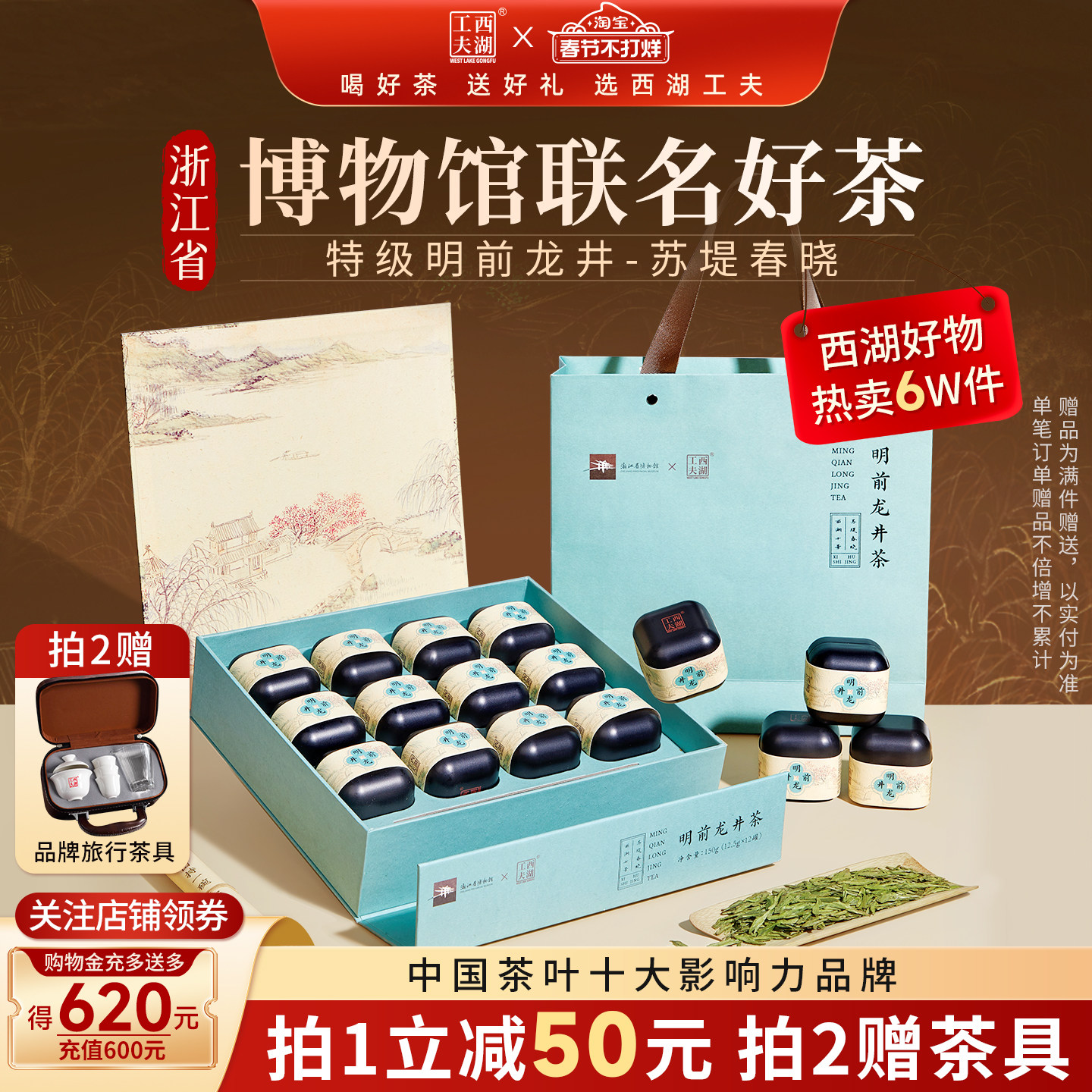 博物馆联名】西湖工夫明前龙井特级茶叶绿茶新年礼盒送人长辈领导