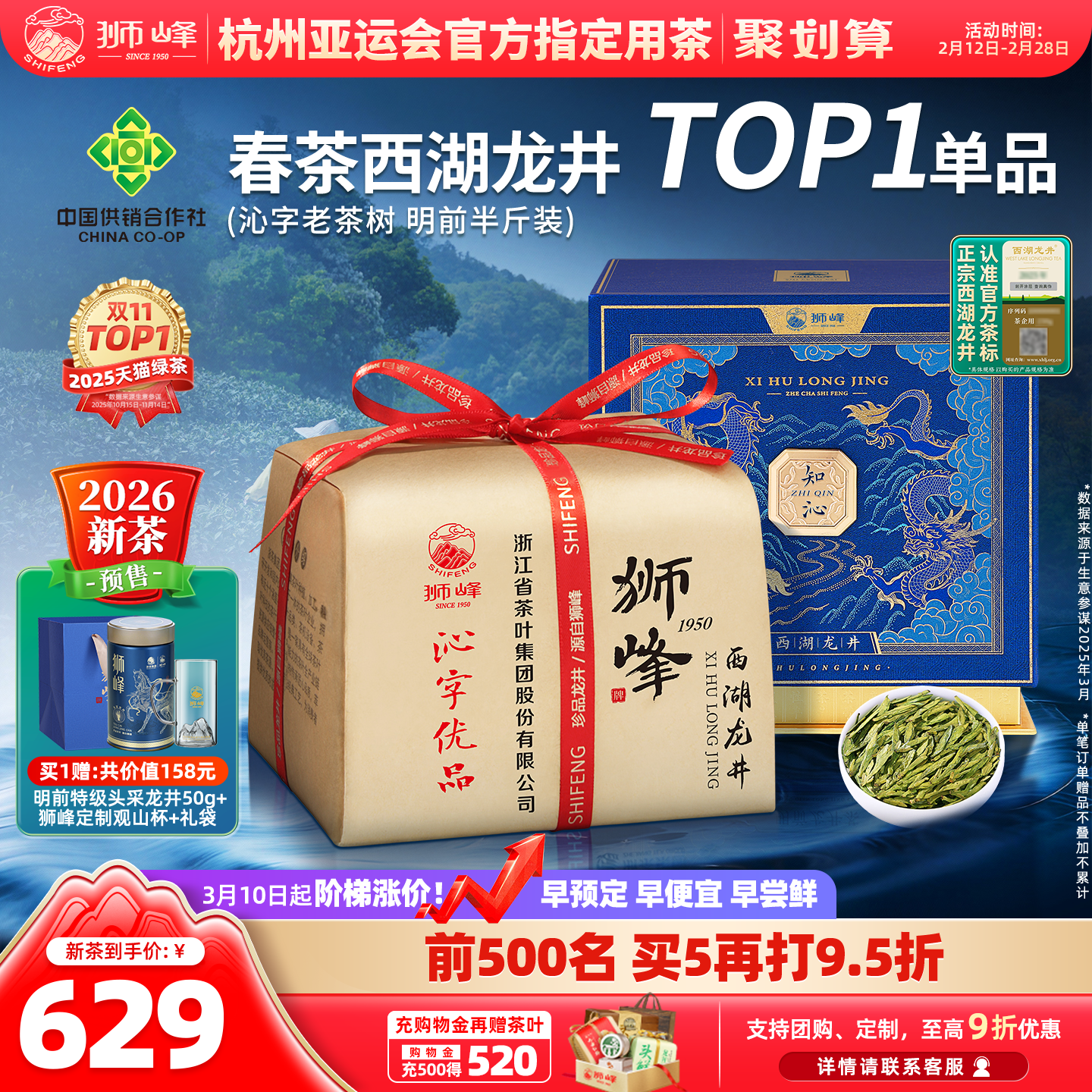 2026新茶预售西湖牌明前特级精选龙井茶叶绿茶春茶礼盒装送长辈