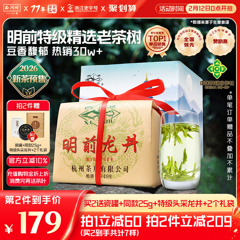 2026新茶预售西湖牌明前特级龙井茶叶200g瓷罐礼盒装送礼送长辈