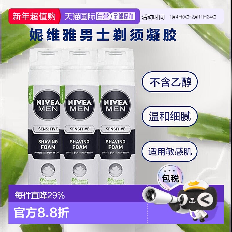 欧洲直邮英国药房NIVEA男士敏感肌肤无酒精剃须泡沫温和舒缓*2