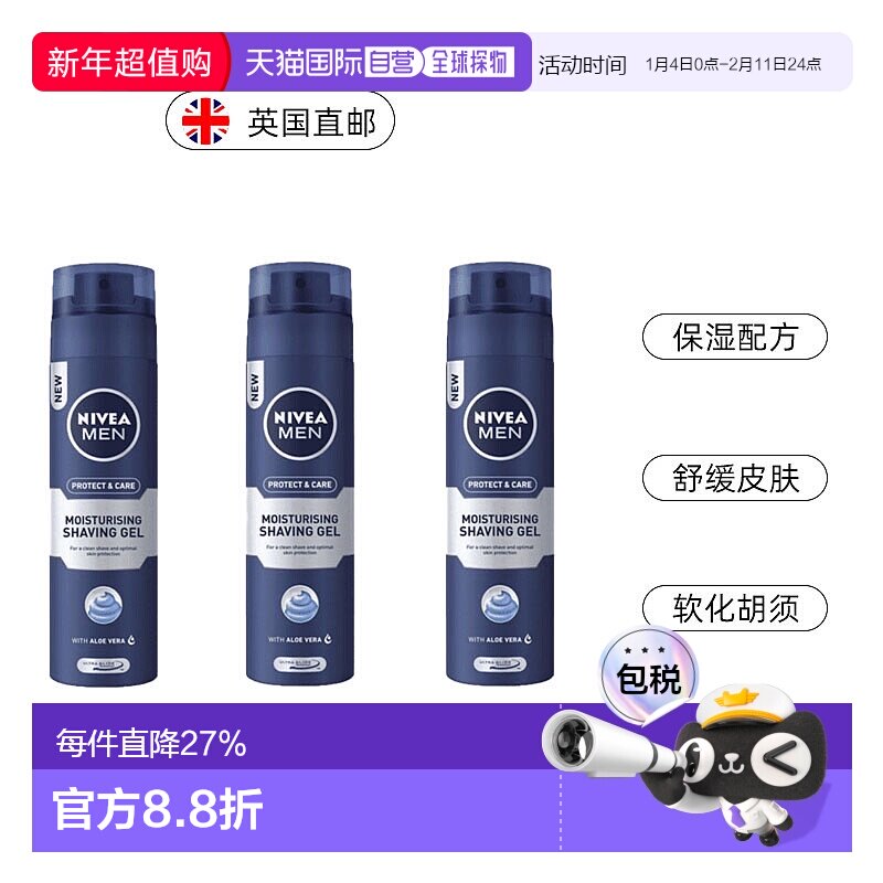 英国药房NIVEA男士保护滋润补水保湿剃须凝胶温和无刺激正品甘油