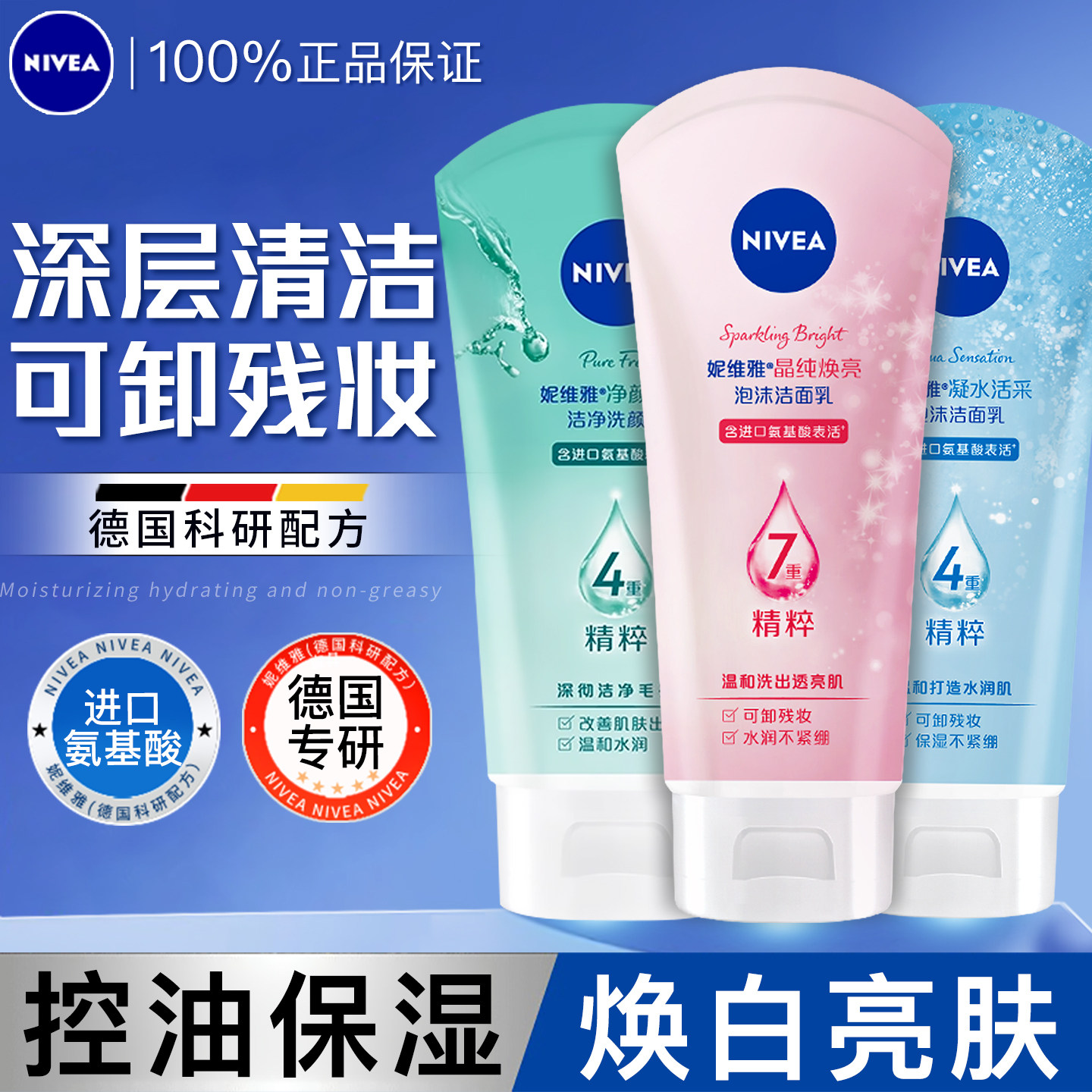 妮维雅氨基酸洗面奶女男士洁面乳深层清洁控油亮肤官方旗舰店正品