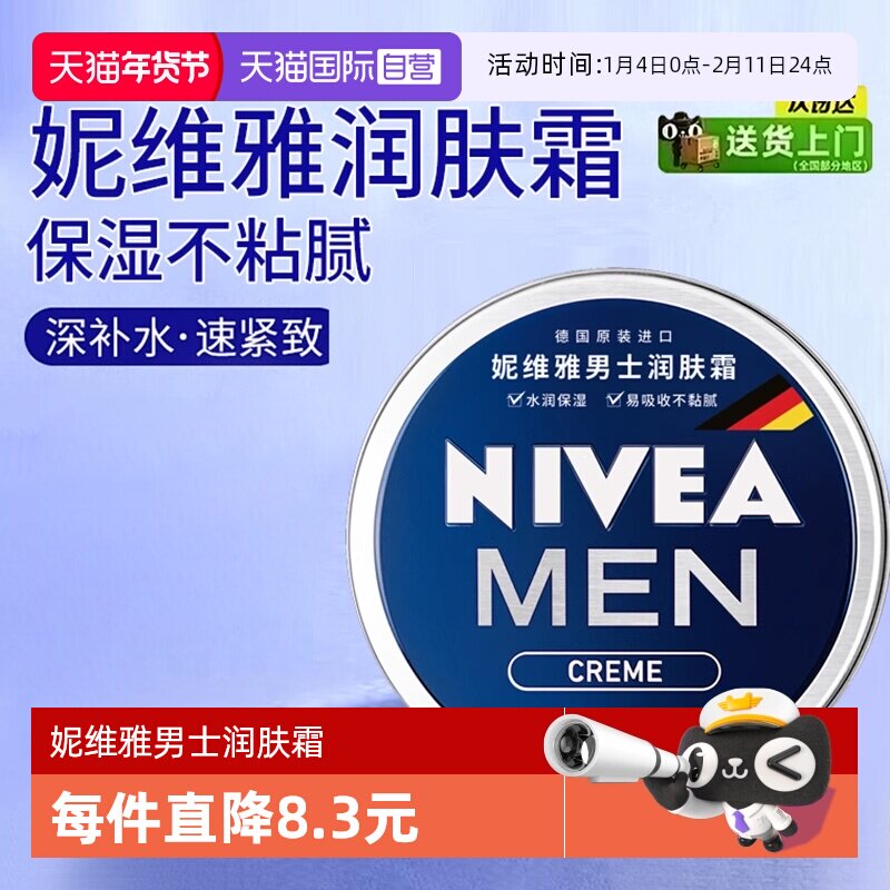 【自营】Nivea/妮维雅男士面霜润肤霜脸部保湿补水小蓝罐擦脸油